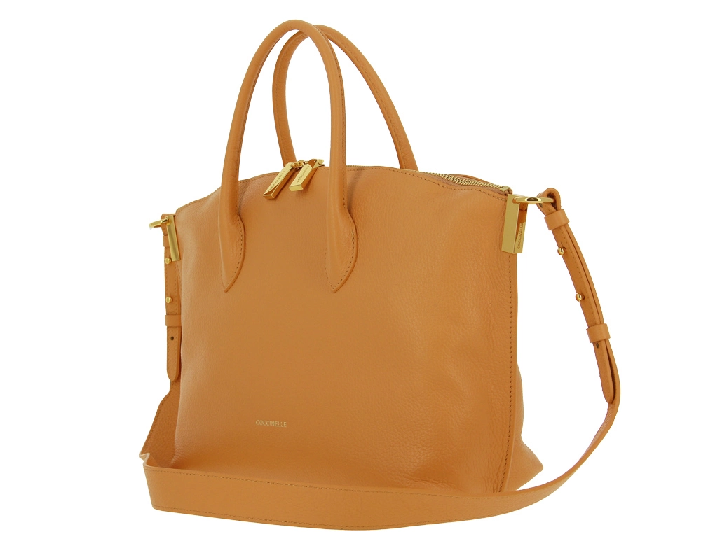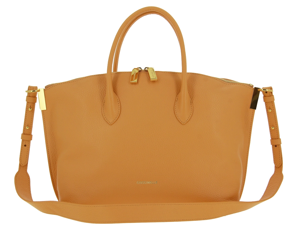 The fashionable Coccinelle bag in a summery apricot is perfect for trendy summer looks. The handles are made of soft leather, which makes the bag comfortable to carry. With an adjustable strap, the bag can also be adjusted to be worn over your shoulders. The numerous inner compartments, some with zips, offer plenty of storage space. The bag has the following dimensions: length 27 cm x width 40 cm.