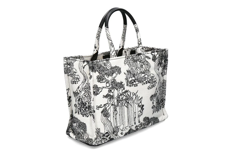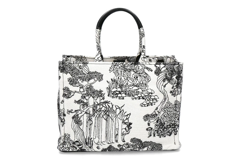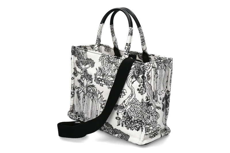 The trendy Coccinelle bag made of jacquard fabric is the trend of the new season. With its fairytale forest motif, the shopper stands out from other bag designs. The bag has a leather tag with the inscription “COCCINELLE NEVER WITHOUT BAG”. The bag also has 4 inner compartments and a magnetic press stud to close it. A detachable shoulder strap made of woven ribbon allows the bag to be worn casually over the shoulder. Dimensions: length 36cm x width 27cm