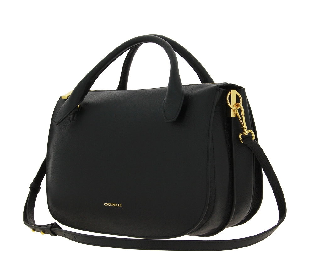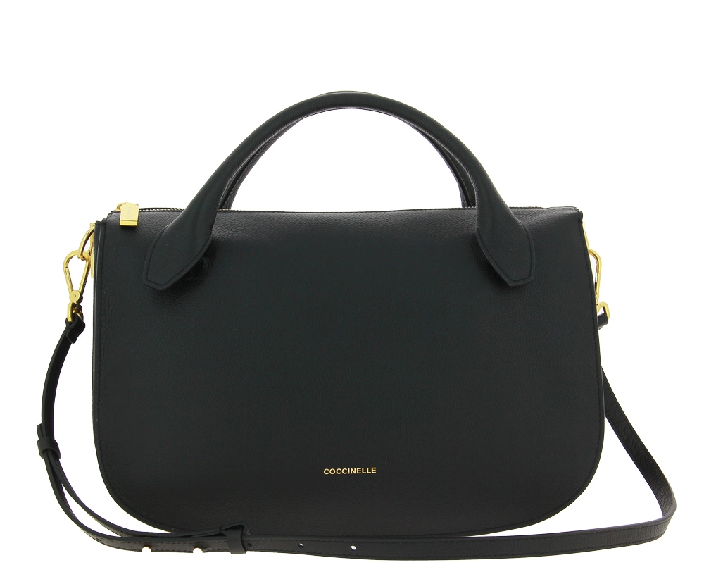 The elegant bag from Coccinelle impresses with its classy design. The bag is perfect for business looks. With its golden details, however, it becomes an eye-catcher. The lining of the bag is made of finest caramel-coloured Italian leather. The bag has two short carrying handles and a strap to hang it around your shoulders, making it adjustable and versatile. The bag has the following dimensions: length 35cm x width 25cm