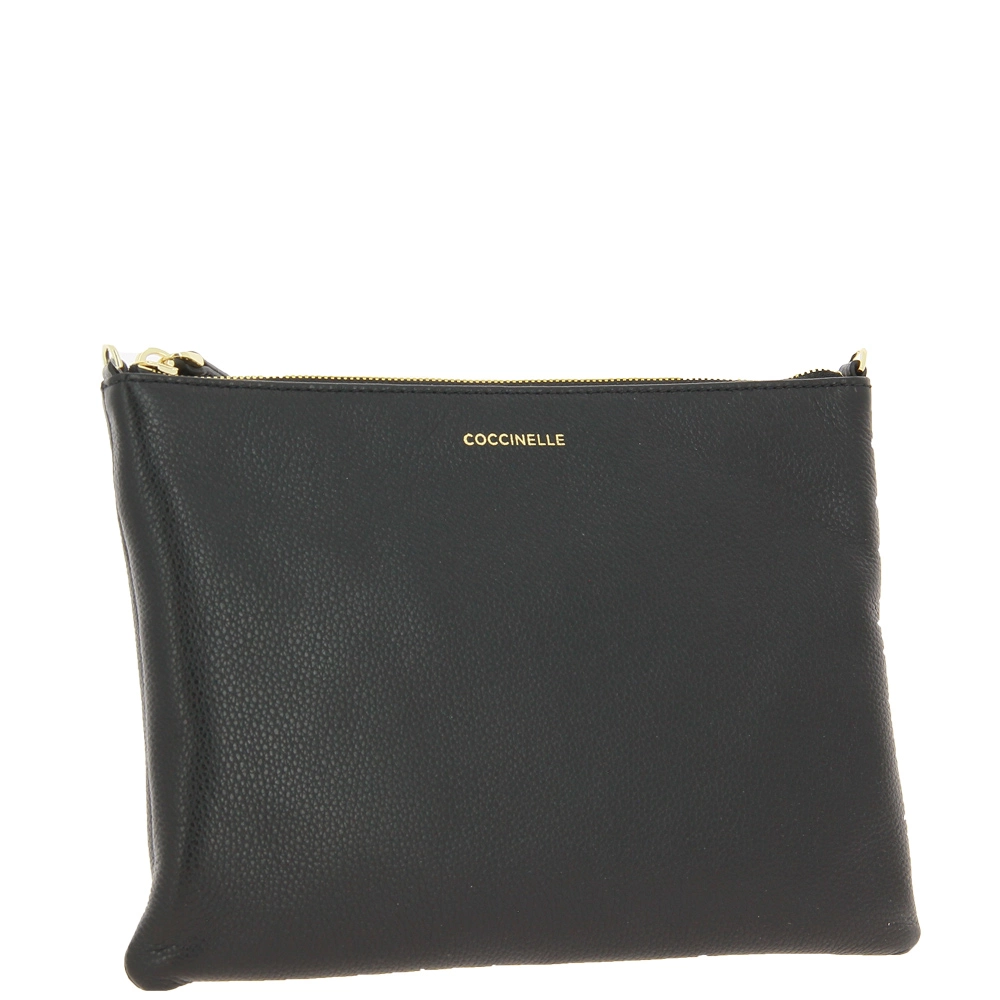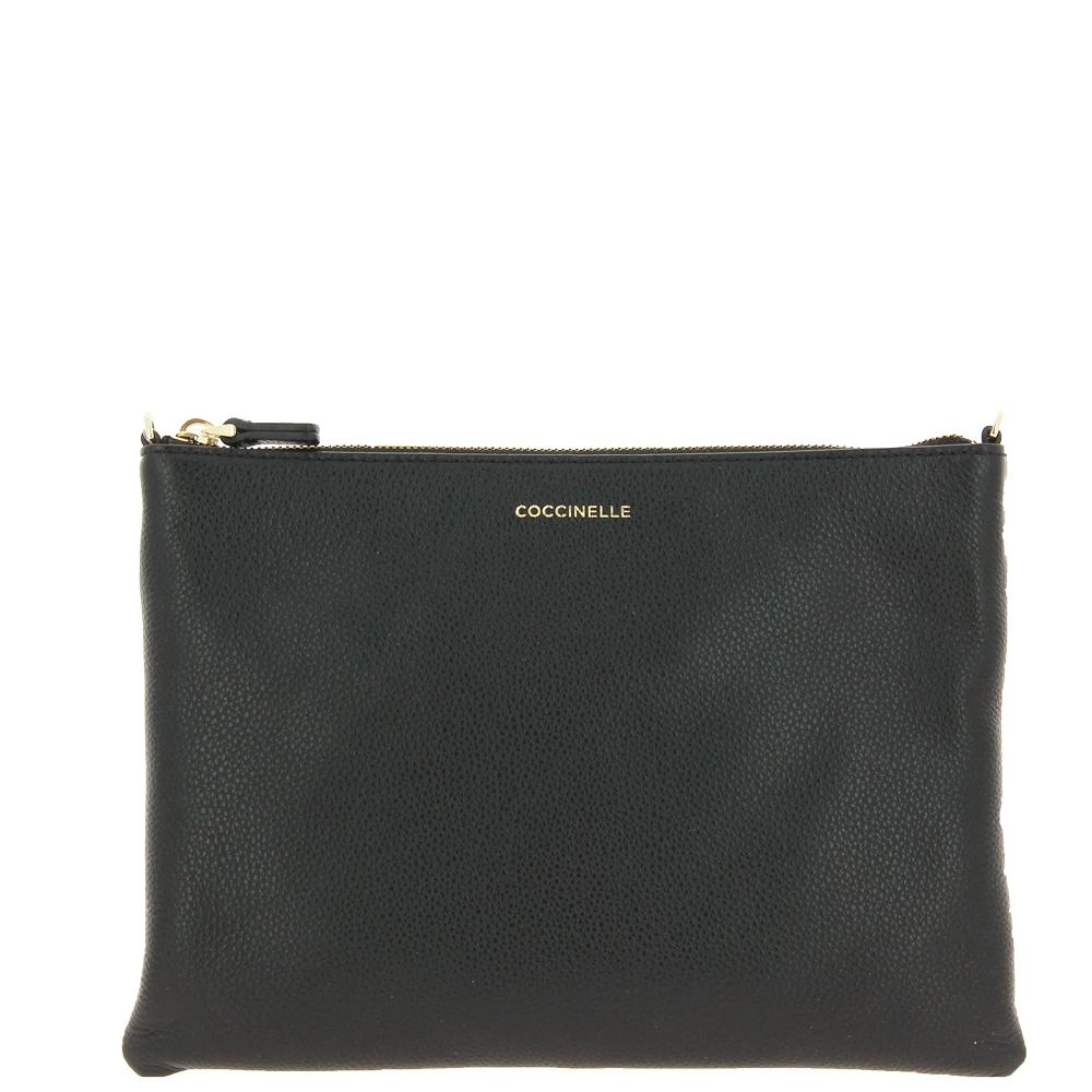 Die Clutch von Coccinelle aus Kalbsleder in schwarz ist ein toller Sommerbegleiter der Ihre Outfits gekonnt abrundet. Das Modell verfügt noch über einen Lederriemen. Der goldene Logoschriftzug vollendet das Gesamtbild. Hergestellt werden Coccinelle Taschen mit bester Verarbeitung in Italien.