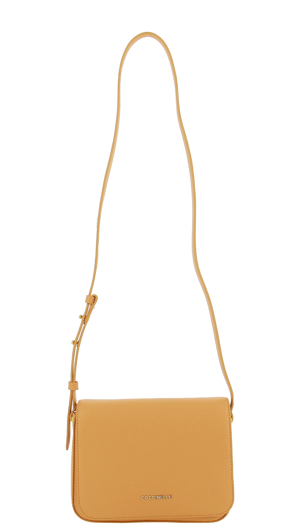 The small angular shoulder bag from Coccinelle goes perfectly with summery dresses. The apricot-coloured bag can be closed magnetically. The narrow strap can be easily adjusted. Inside the bag there is a zipped compartment and a pocket underneath the flap. The dimensions of the bag are as follows: Length 20cm x width 16cm