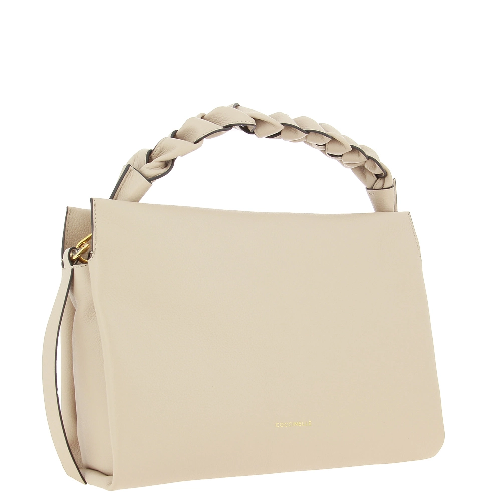 Weiches Leder und eine exklusive Form zeichnen die Boheme von Coccinelle aus. Das Modell mit geflochtenem Henkel wirkt feminin und modern zugleich. Zudem ist sie sehr geräumig und ideal für jeden Tag. Die Maße der Tasche sind 30,5 x 32,5 x5 cm.
