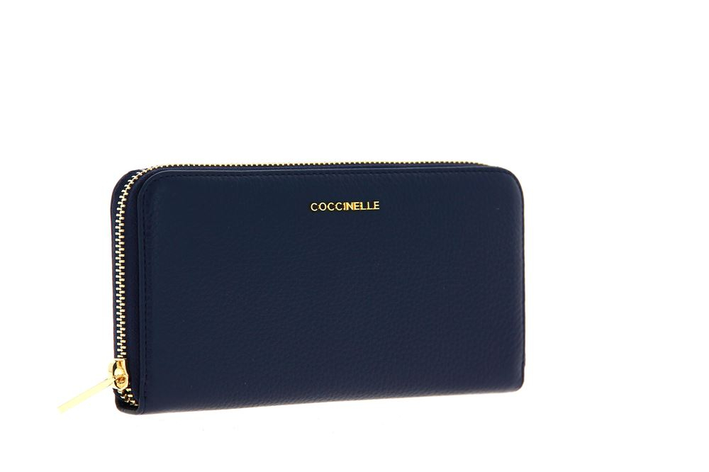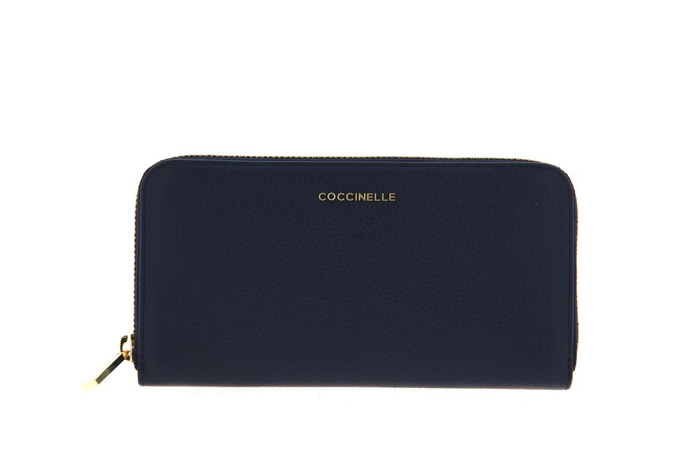 The dark blue wallet by Coccinelle is made of grained leather. The golden logo lettering on the front completes the design. The interior has 12 card slots, a coin compartment that can be opened separately with a zipper and another compartment for receipts, for example. Coccinelle purses are made in Italy.