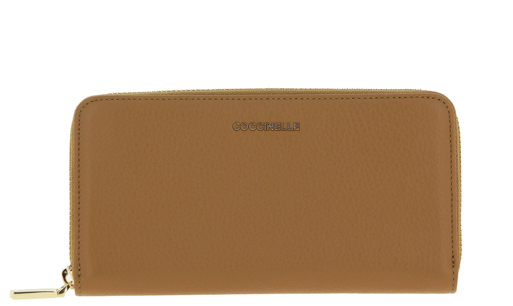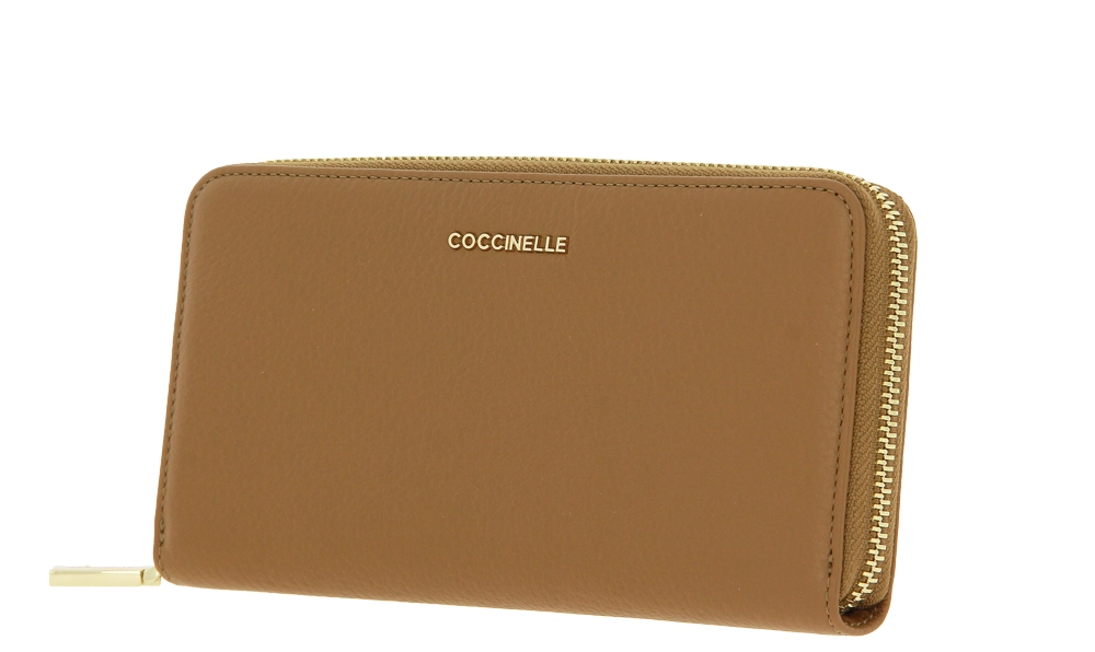 A warm cognac colour design adorns this leather wallet. The hardware is a perfect complement in gold. Inside, the wallet is generously equipped. There is also a compartment with a zip for small change. There is space for 12 cards.