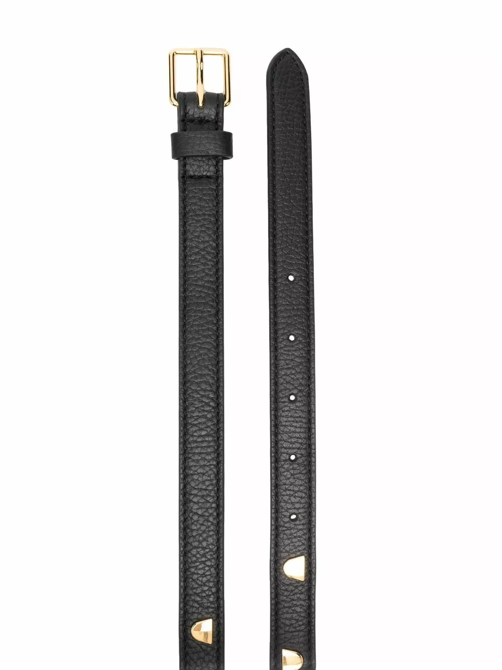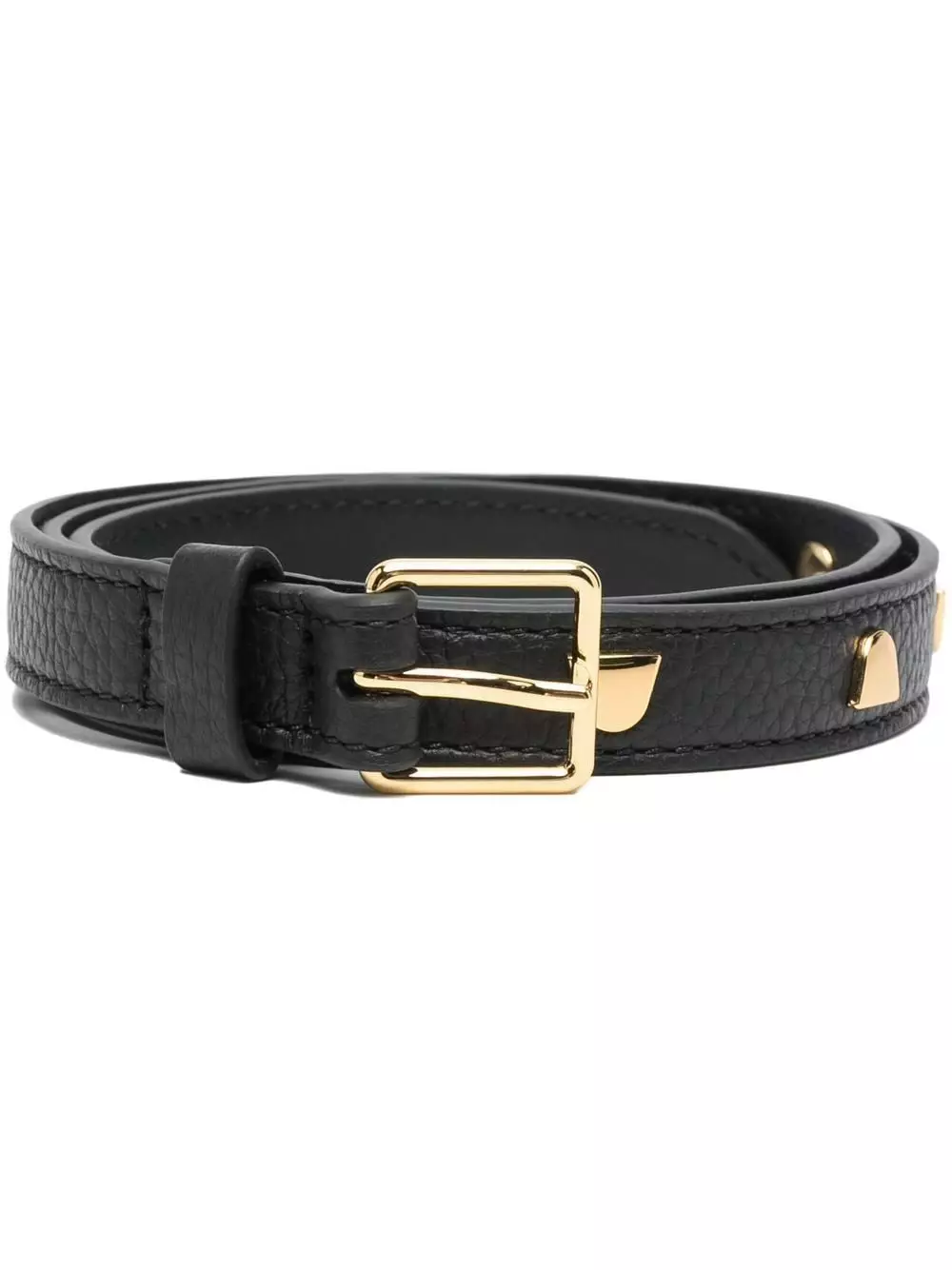grained-leather belt from COCCINELLE featuring black, calf leather, grained texture, gold-tone hardware, gold-tone buckle fastening, punched holes, wraparound style and adjustable fit.