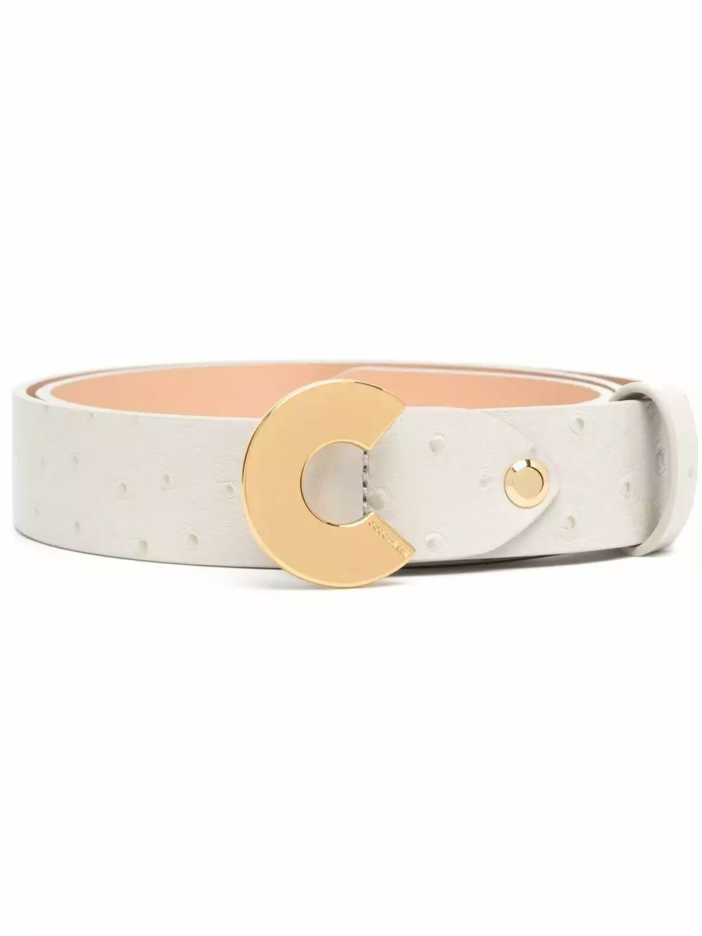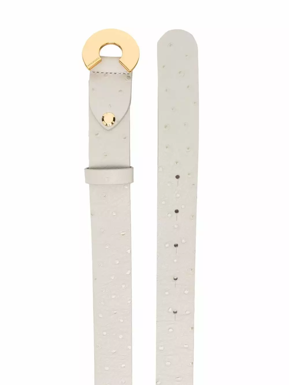 polka-dot leather belt from COCCINELLE featuring white, calf leather, polka dot print, gold-tone buckle fastening, punched holes and adjustable fit.